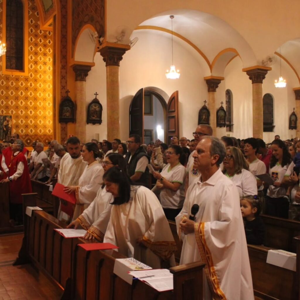 Ontem, nossa paróquia viveu um momento de profunda comunhão e espiritualidade com a Missa das Famílias e do ECC – Encontro de Casais com Cristo, reunindo casais, famílias e toda a comunidade em torno do altar do Senhor.